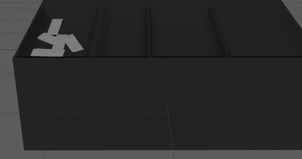 When texturing I started by texturing the main box as a very metallic texture to make it look like a standard cash register, after this for the bolt rack that I made, I also added a metallic texture along with some nails onto it. For the tabs I had 2 separate textures, one was a dark colour metal, the other was a pinkish copper metal, finally for the front opening piece I added a small strip of black along the front to indicate that it is there.