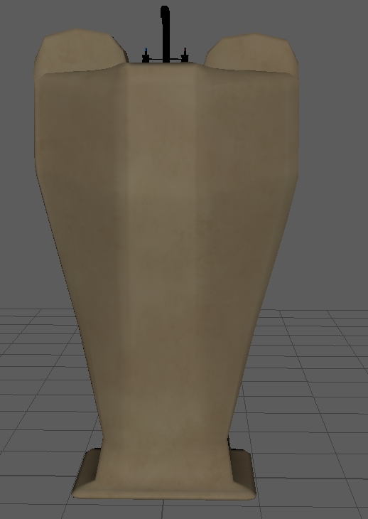 For texturing I gave the main body a yellow ceramic texture from substance. For the taps I gave them a copper texture along with a red and blue stopper depending on the tap. Finally for the water I made it a grey/blue colour with some transmission for transparency.