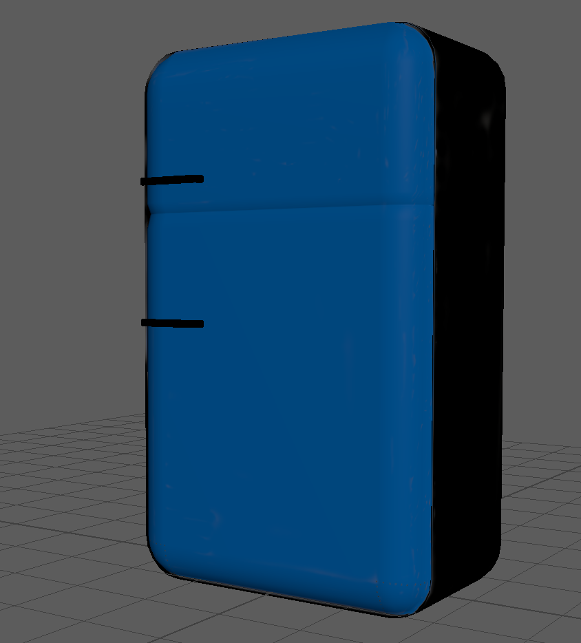 To texture my model was quite simple, I first textured the front of the fridge to a blue colour, and then the back and sides of the fridge to a dark black, this is stark contrasts in colouring, next I gave the handles metallic textures so that they look just like fridge handles in real life.