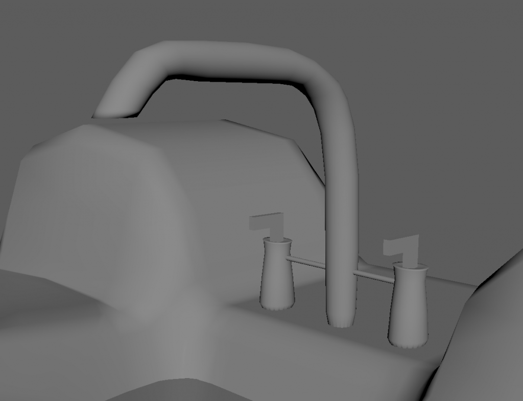 To create my asset I started off by making a cube which i elongated and manipulated to resemble a shape of a sink, I then raised parts of the model so that it would have some distinct sides to it. After this I made a cylinder which i beveled and moved to create the shape of a tap, after this i added a couple more cylinders and some cubes which I shrunk and positioned to make them look like taps, Finally I added a plane which I turned into water.