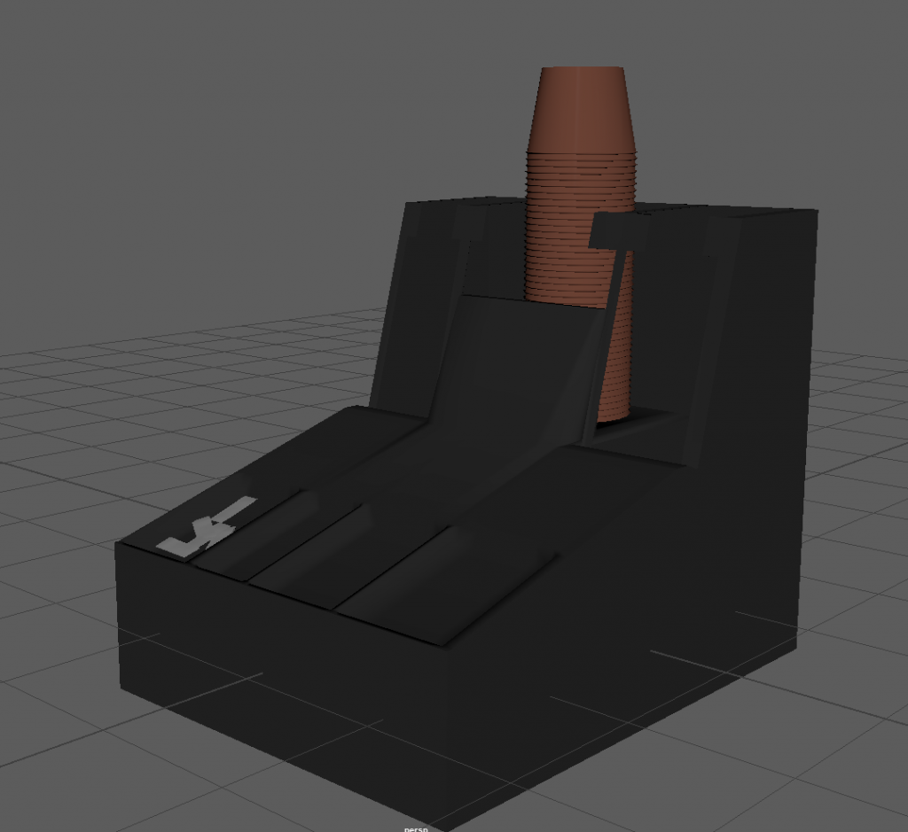 To create this asset I began by adding a cube to the scene, I then added loop cuts to it and moved the front vertices downwards to about 1/4 of its previous position, i then created more loop cuts and then indented different parts of the top face to create little sections which sugar packets and objects like that could be placed inside of. After this I created more loop cuts on the sloped face of the model, i then removed some faces and cleaned it up. I then created some cups out of cylinders where I removed the top face to the model, I then duplicated it 20 times to make 20 cups and then stacked them on top of each other and placed them inside of one of the openings at the top. Finally I created some packets