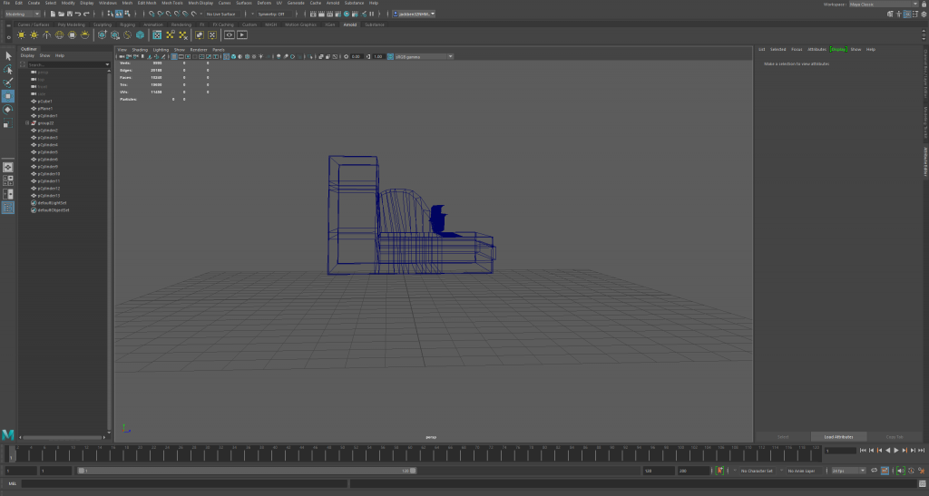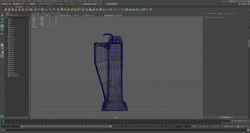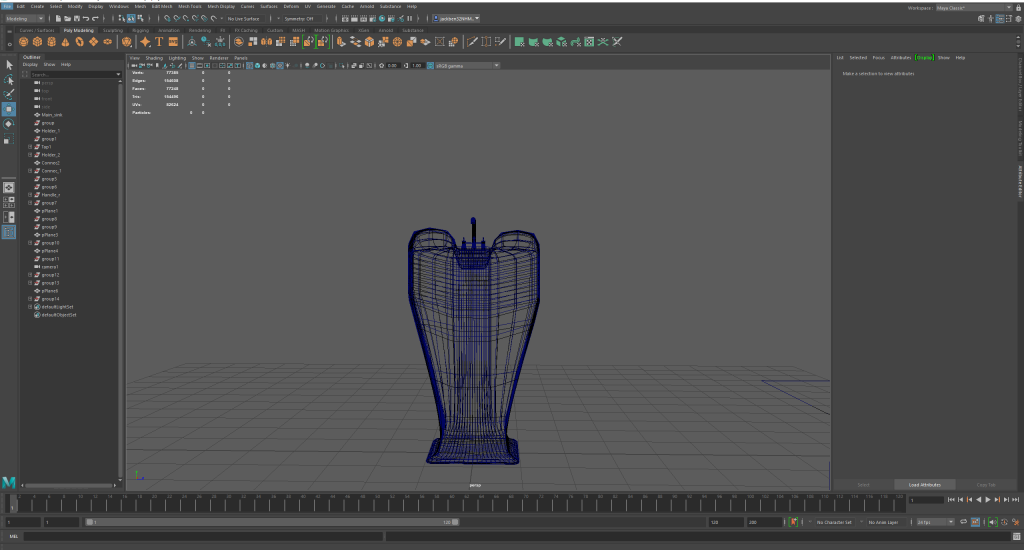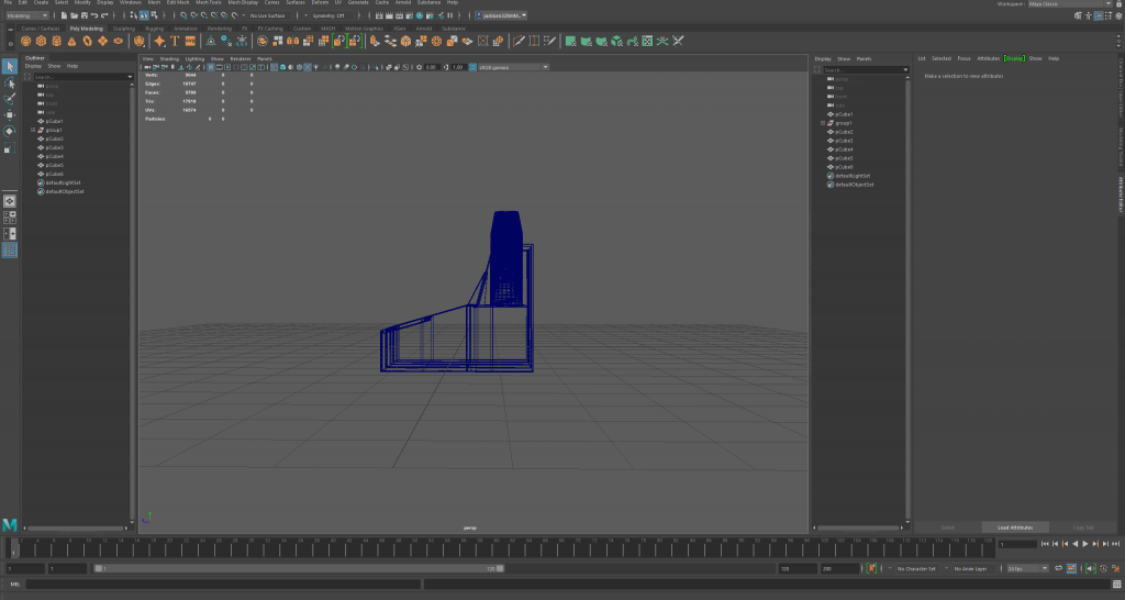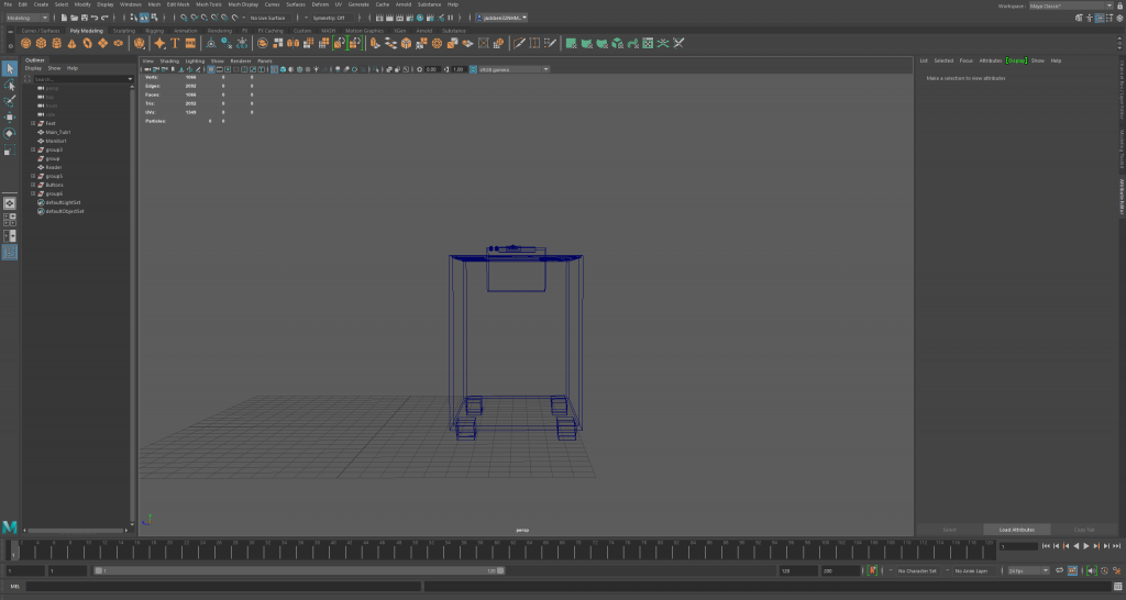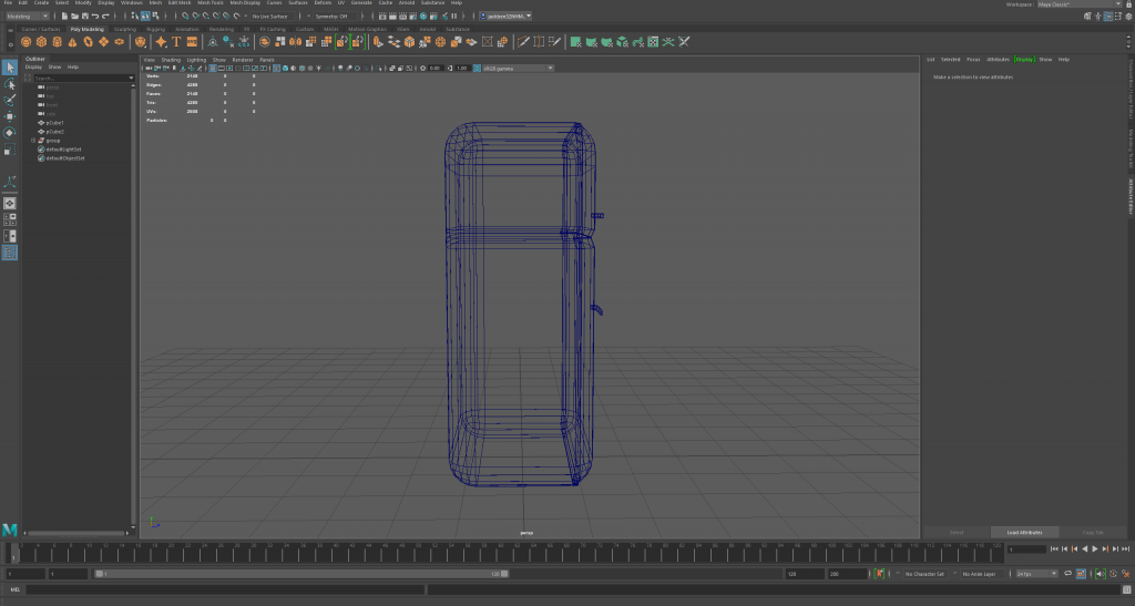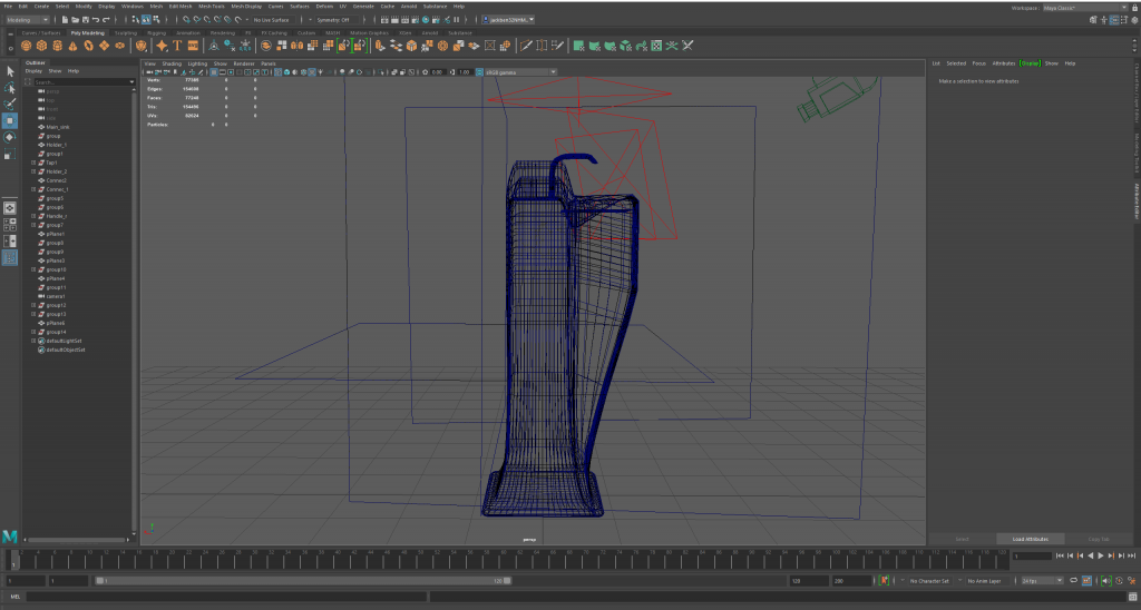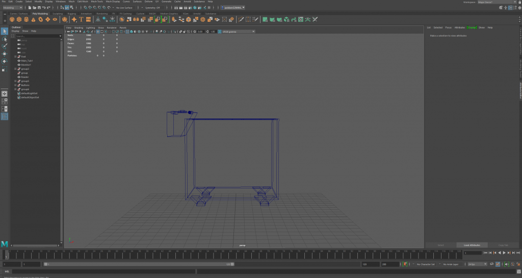 The first model here is my sink. Below are multiple angles of my sink within the wireframe mode of Maya.